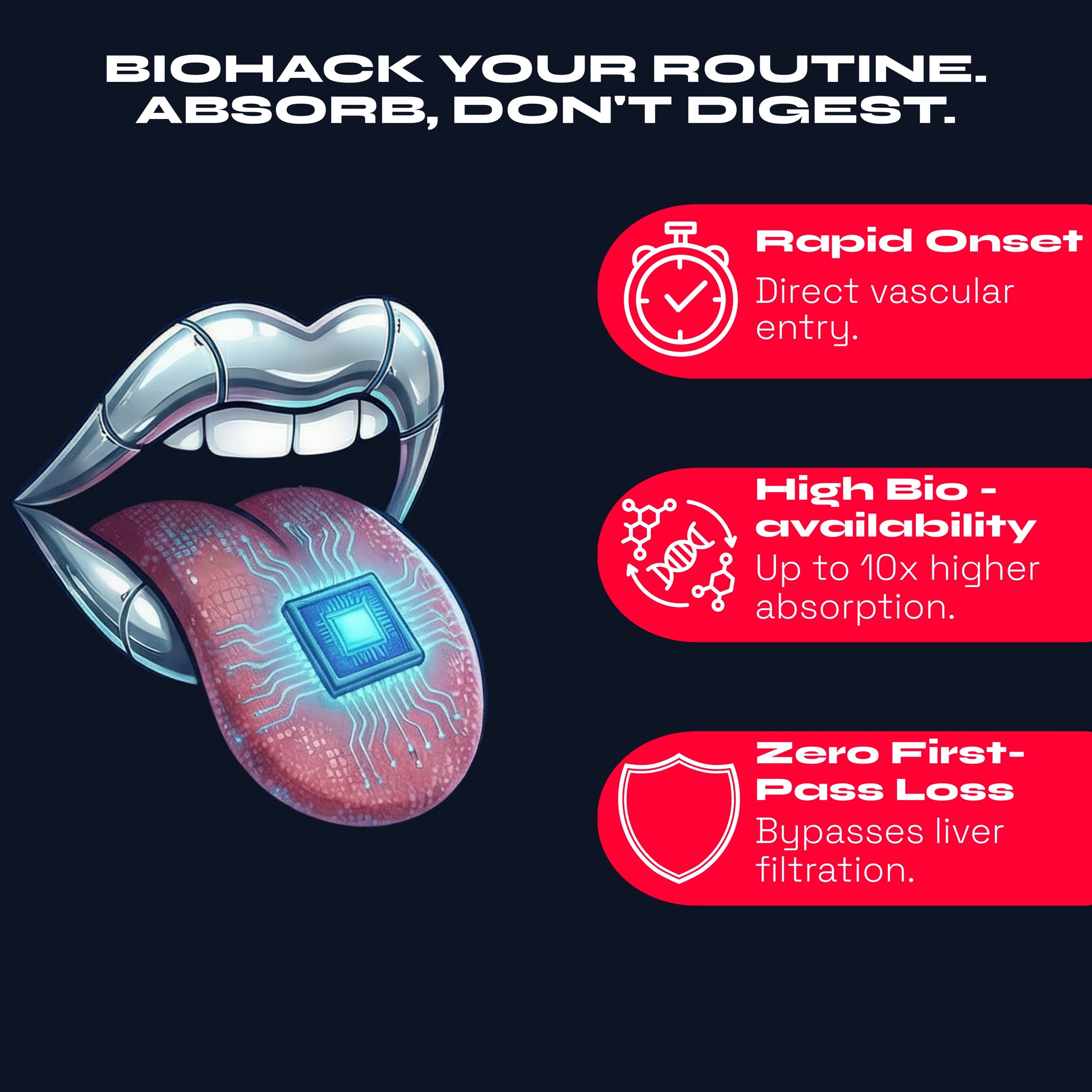 Strips dissolve on your tongue and deliver actives sublingually — designed to reduce the “digestion delay” you get with capsules and the sugar/fillers common in gummies. Less friction, faster routine, more consistency.*