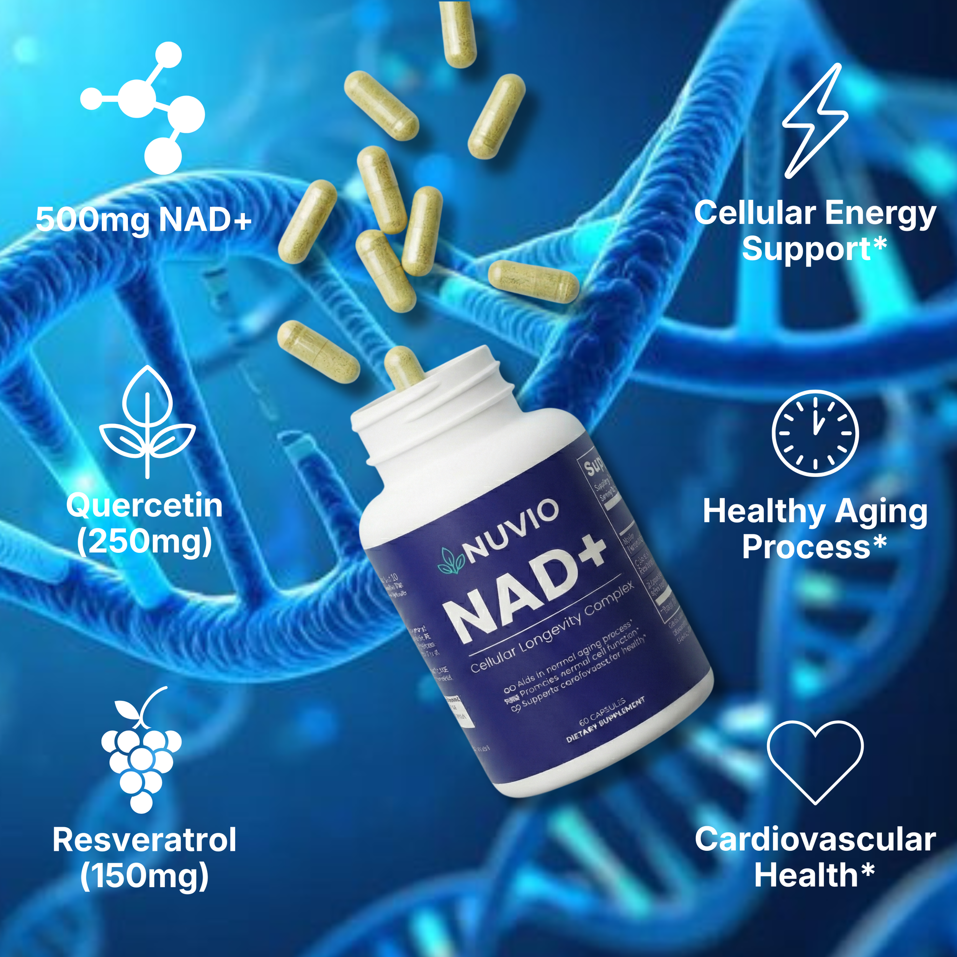 Stop buying 3 separate bottles. NUVIO combines clinical-grade 500mg NAD+ with the CD38 Defense and Sirtuin Activators missing in standard supplements.Instead of just filling the tank, our synergistic matrix plugs the leaks and starts the engine—delivering a complete longevity protocol in one daily habit. See the difference: