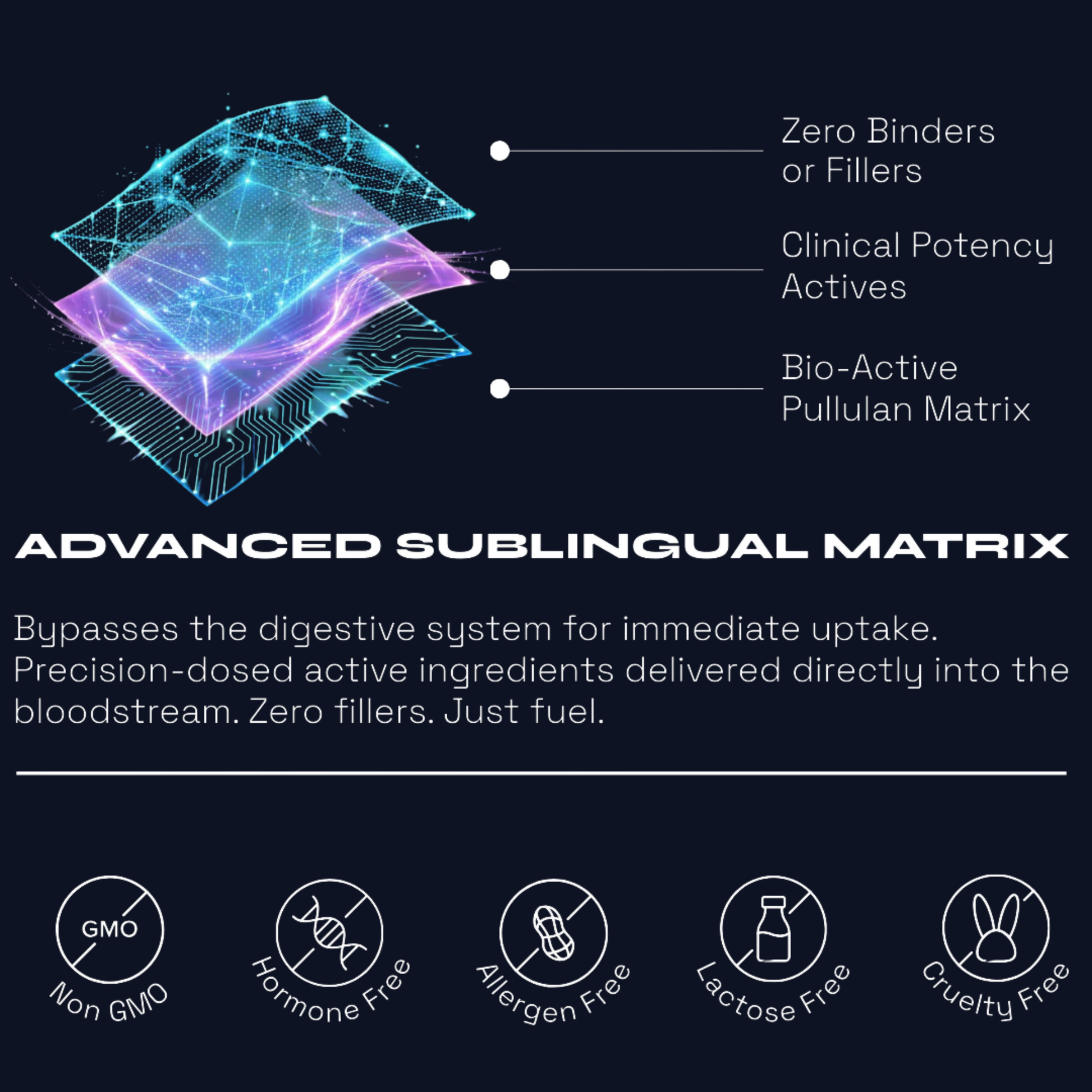 Strips dissolve on your tongue and deliver actives sublingually — designed to reduce the “digestion delay” you get with capsules and the sugar/fillers common in gummies. Less friction, faster routine, more consistency.*